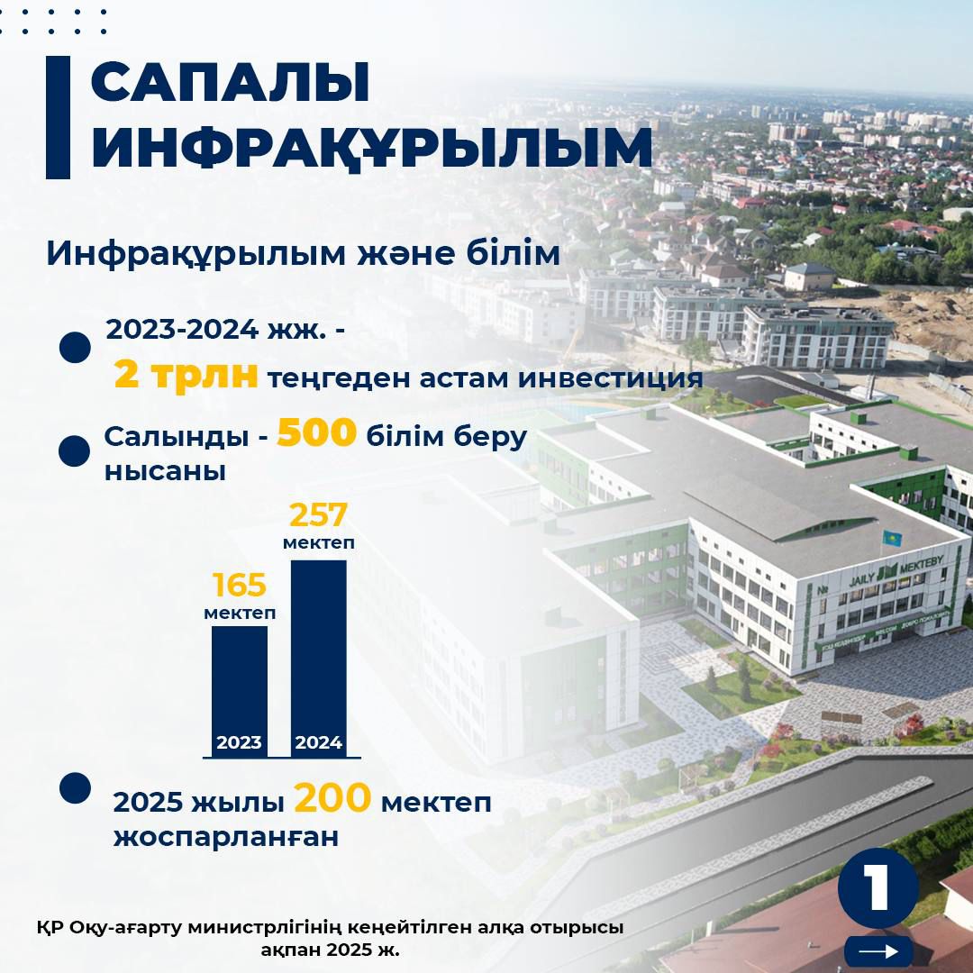 Сапалы Инфрақұрылым Бейсенбі, 06 Ақпан 2025 Қаралды: 31 ҚР Оқу-ағарту министрлігінің «Қазіргі білім:сапа және менеджмент, заманауи инфрақұрылым, балалардың қауіпсіздігі,экономика үшін маман даярлау» тақырыбында кеңейтілген алқа отырыс өтті.