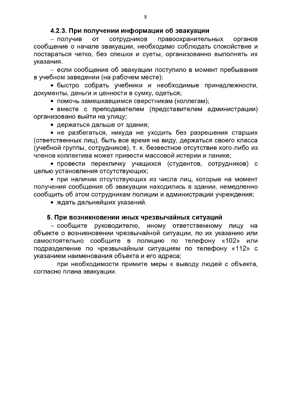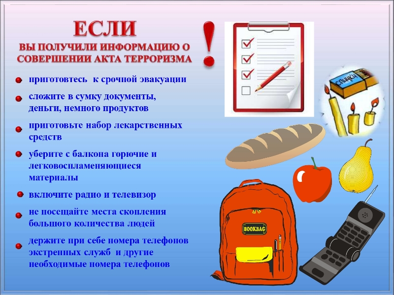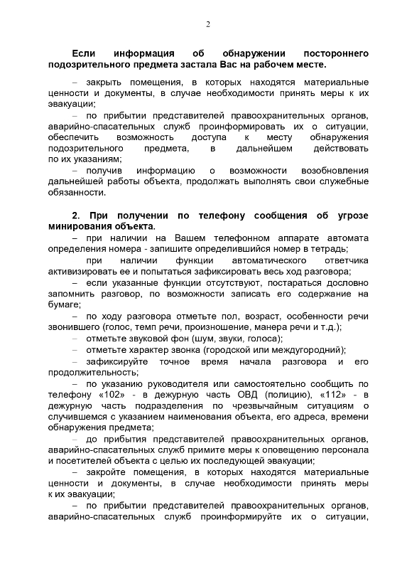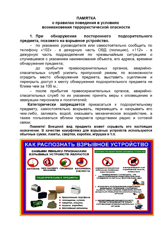 Памятка о правилах поведения при угрозе или совершении акта терроризма