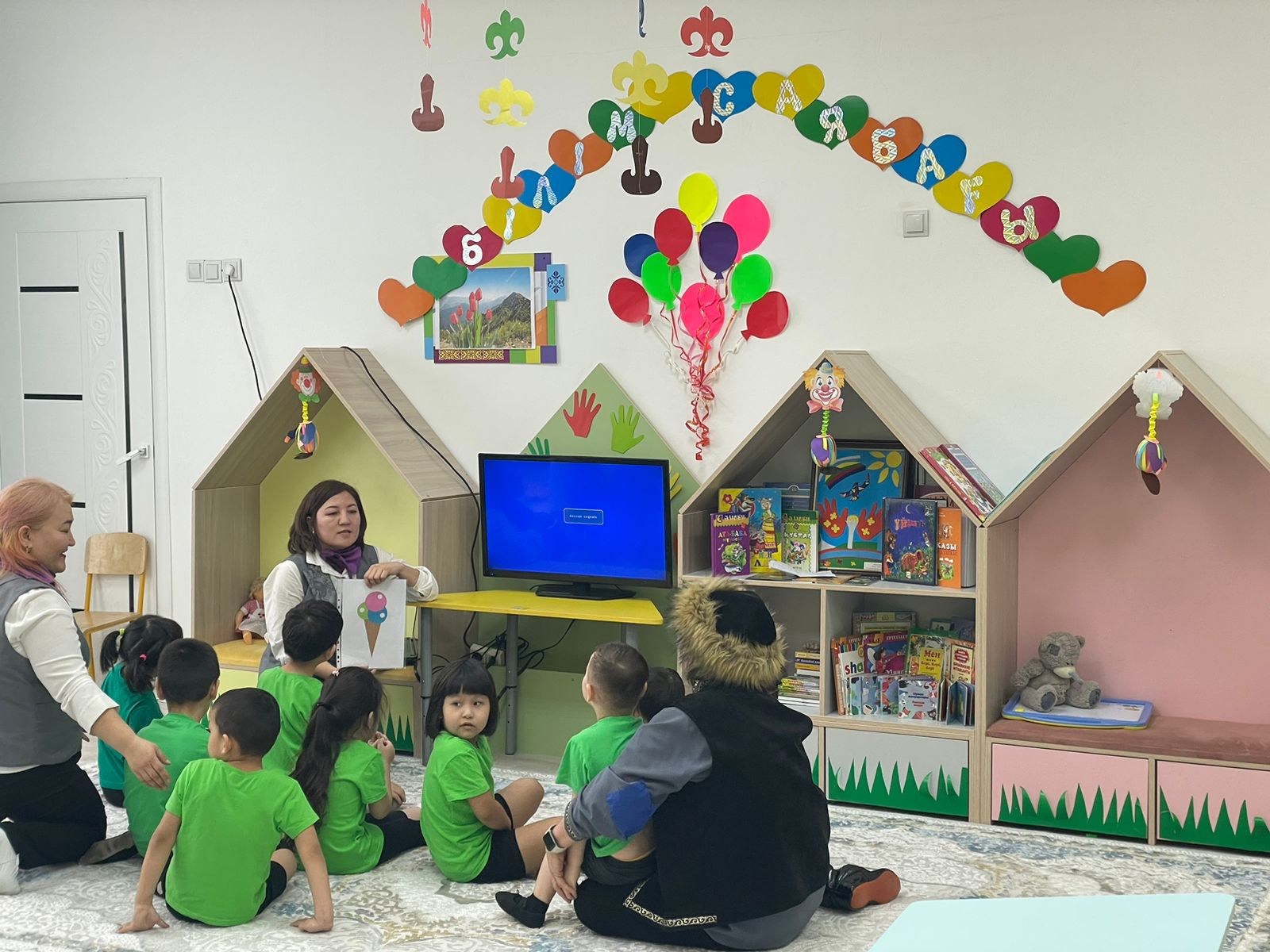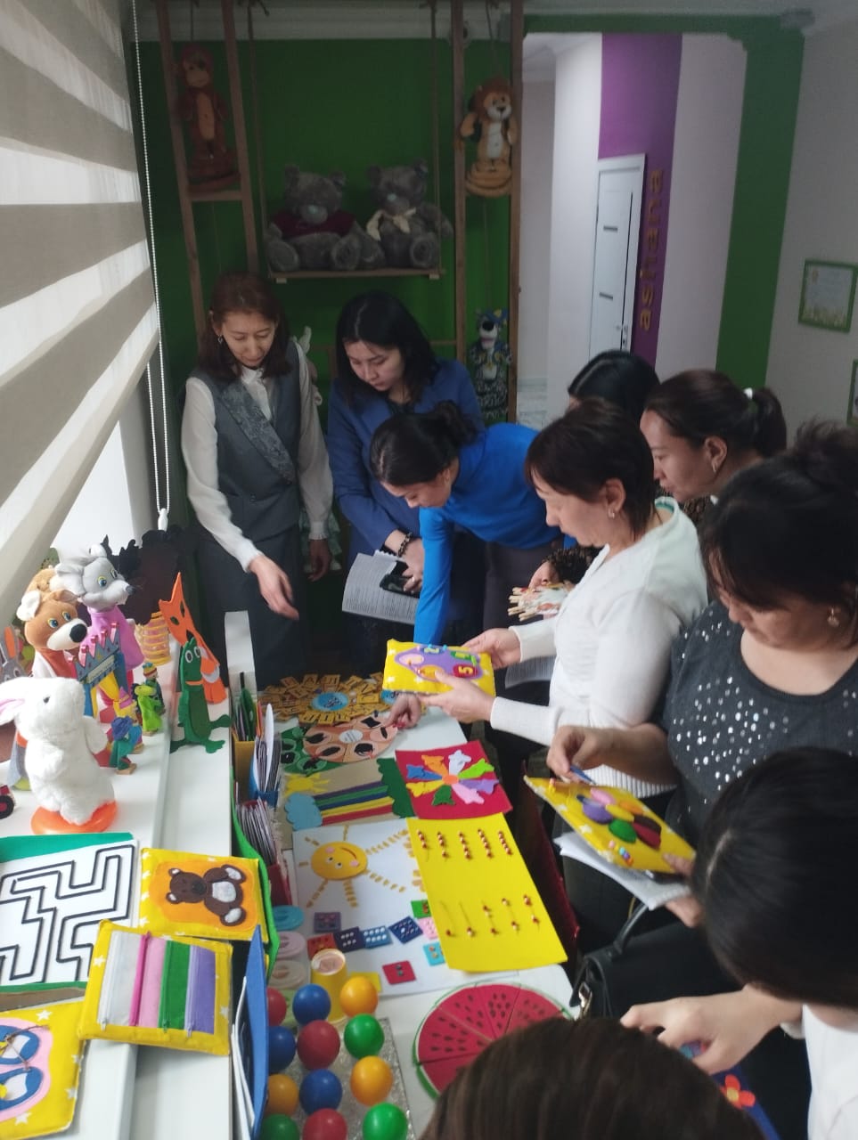 с тренинга, организованного молодыми специалистами «Жас келсе іске...». Воспитатель средней группы "Салауат" Абдикаримова Ж., воспитатель предшкольной группы "Зияткер" Серкебаева К., воспитатель предшкольной группы "Саналы" Бузаубакова М., воспитатель группы "Өрлеу"