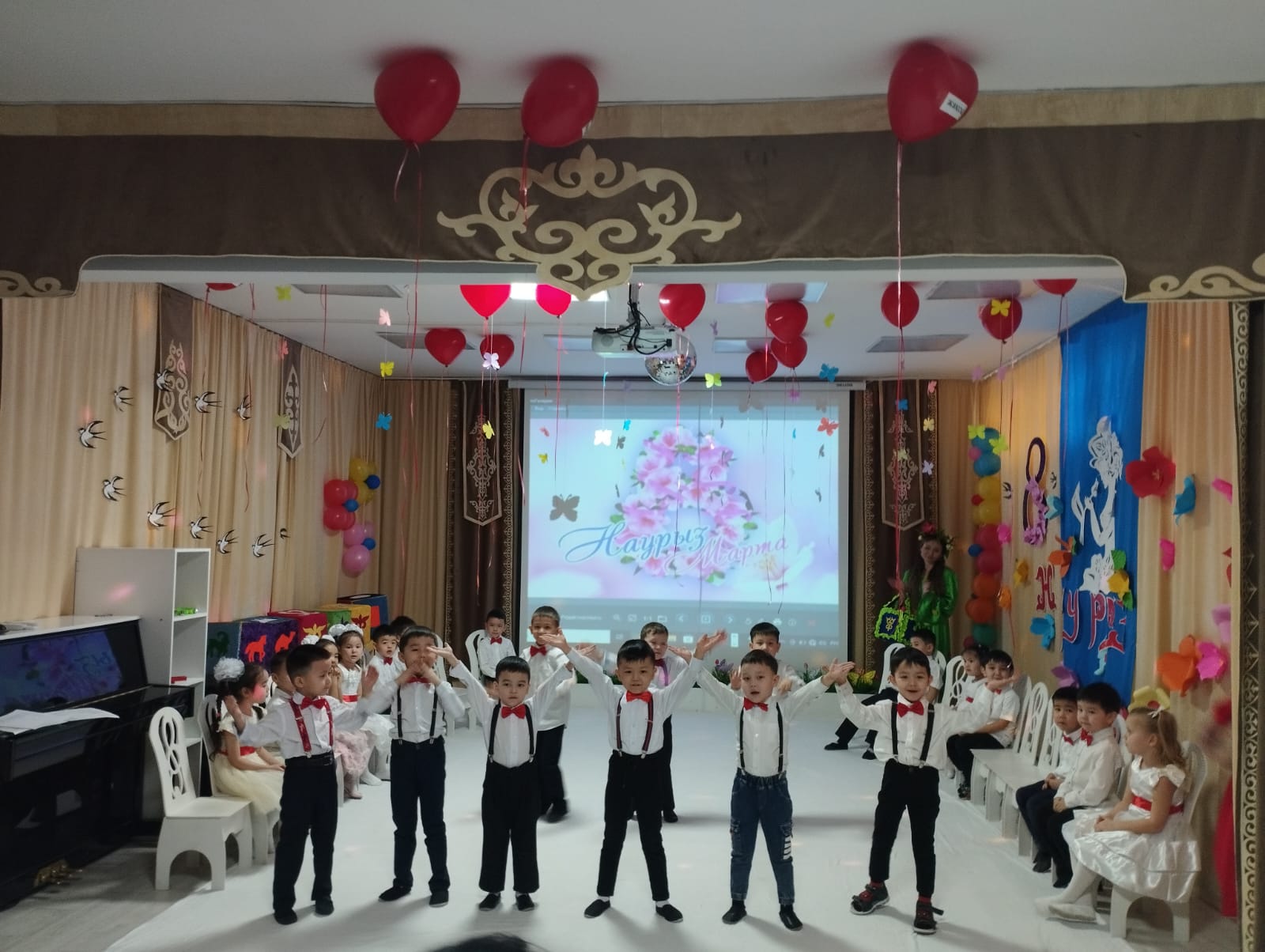 В соответствии с месячным планом на март 2023 года в детском саду реализованы мероприятия, посвященные Международному женскому празднику 8 марта «Аналар-асыл жандар». В ходе мероприятия было организовано праздничное оформление мест проведения праздника, были соблюдены все правила безопасности. 6 марта среди групп был организован конкурс «Үздік ашық хат», победителем которого стала взрослая группа «Парасат», воспитатель группы Р.Ф. Бейсекеева, была награждена книжками-сказками для детей, грамотами. С 3 по 7 марта в группах с участием родителей были проведены утренники «Аналар-асыл жандар». На утреннике ребята смогли передать свои теплые пожелания мамам через песни, танцы, стихи.